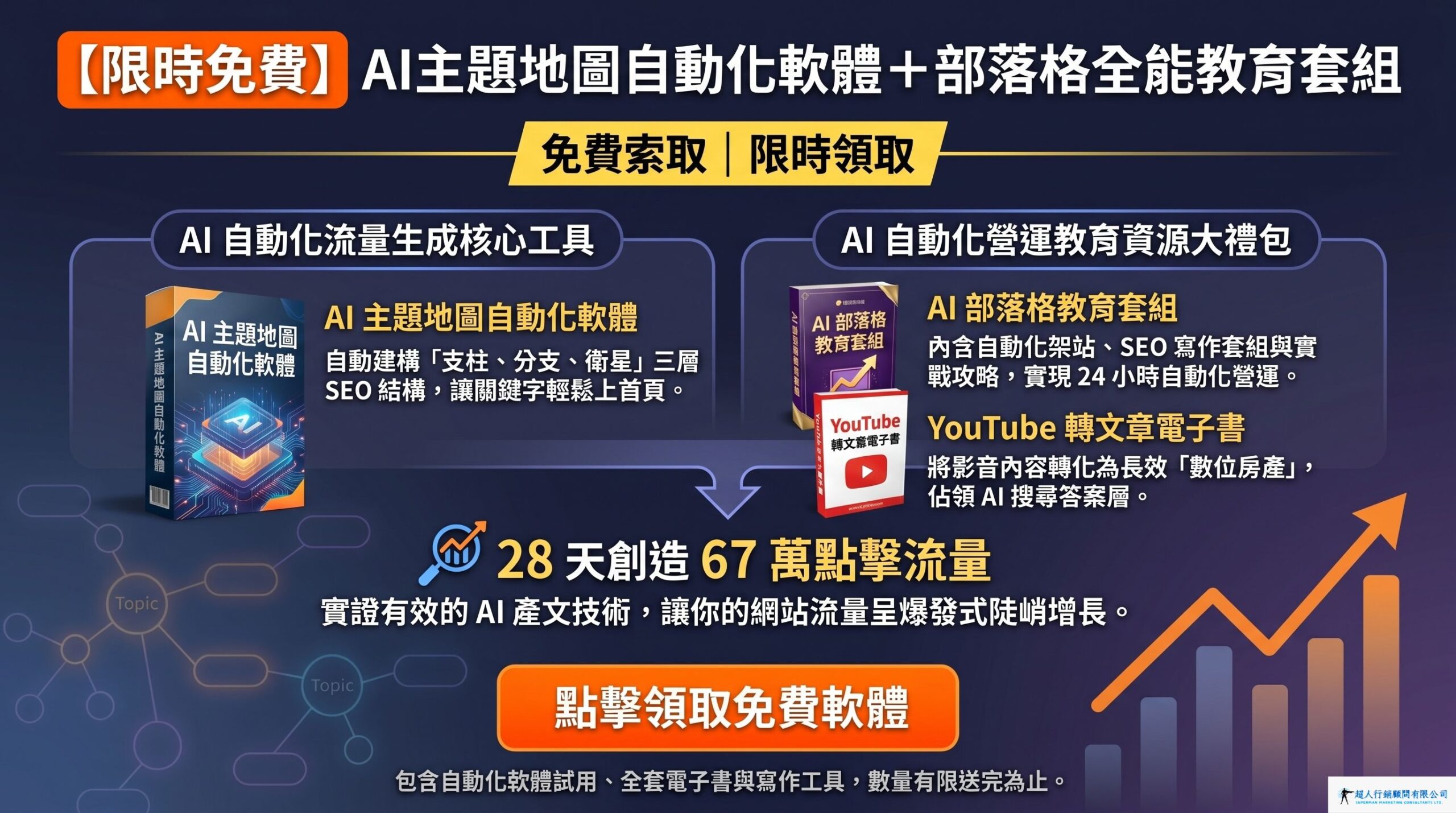 中央大學數學碩士,董老師從2011年開始網路創業,教導網路行銷,並從2023年起專注AI領域,特別是AI輔助創作。本網站所刊載之文章內容由人工智慧(AI)技術自動生成,僅供參考與學習用途。雖我們盡力審核資訊正確性,但無法保證內容的完整性、準確性或即時性且不構成法律、醫療或財務建議。若您發現本網站有任何錯誤、過時或具爭議之資訊,歡迎透過下列聯絡方式告知,我們將儘速審核並處理。如果你發現文章內容有誤:點擊這裡舉報。一旦修正成功,每篇文章我們將獎勵100元消費點數給您。如果AI文章內容將貴公司的資訊寫錯,文章下架請求請來信(商務合作、客座文章、站內廣告與業配文亦同):[email protected]